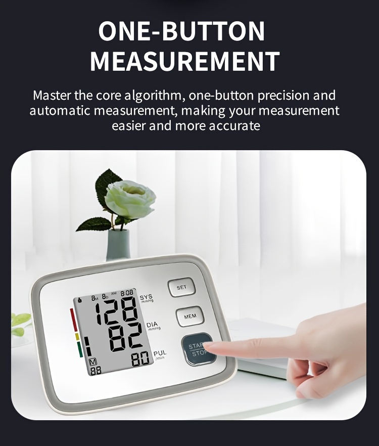 [Fully automatic blood pressure meter] One-button operation, automatically measures blood pressure within 30 seconds, and automatically turns off after 3 minutes of inactivity to save power;