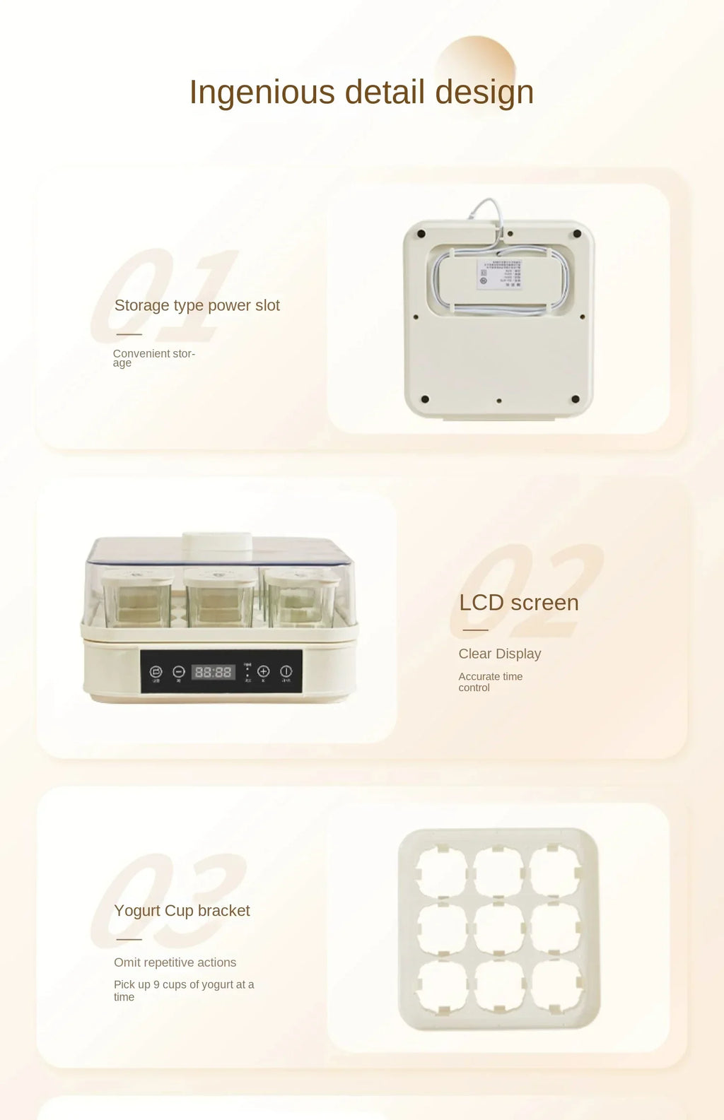 220V Automatic Yogurt Maker with 9 Jars, Perfect for Homemade Pickles, Natto, and Sake, Large Capacity A