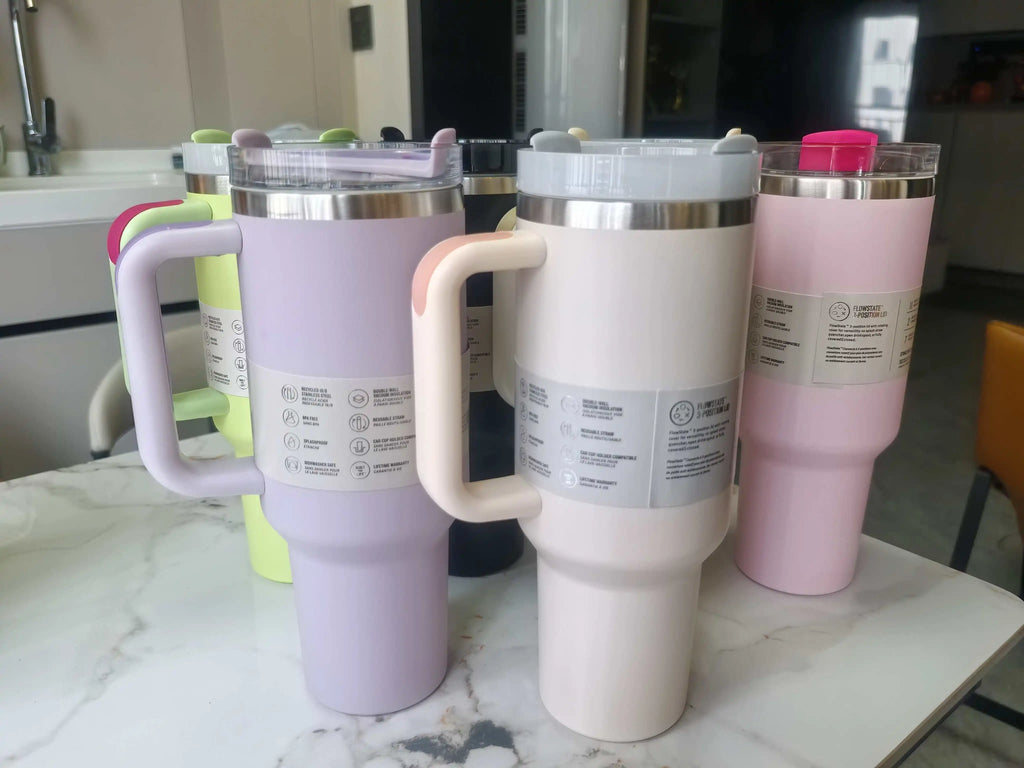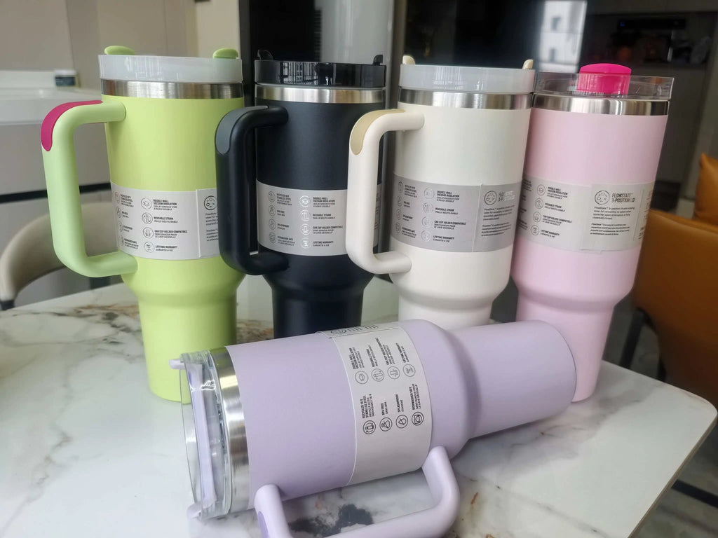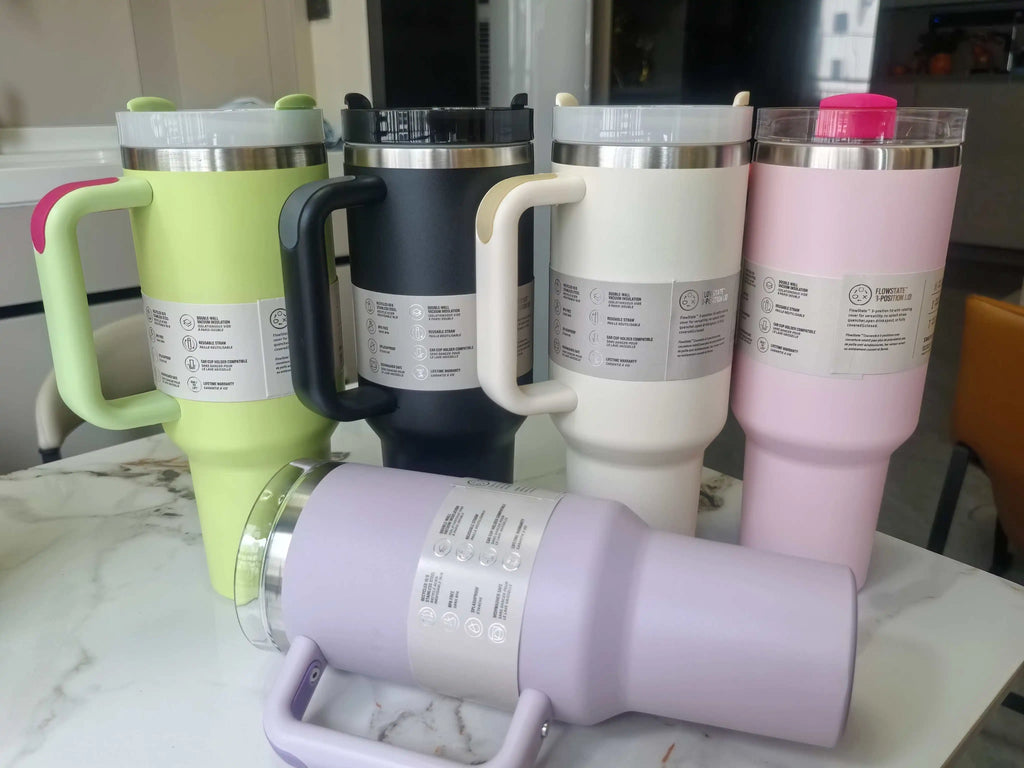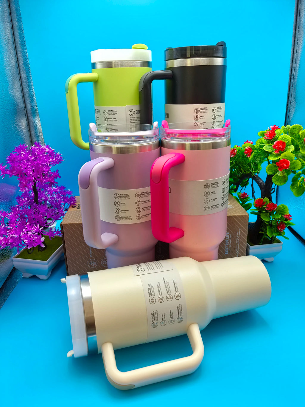 40 oz tumbler with handle and straw | Cup holder for travel | Insulated stainless steel cup | BPA- free |