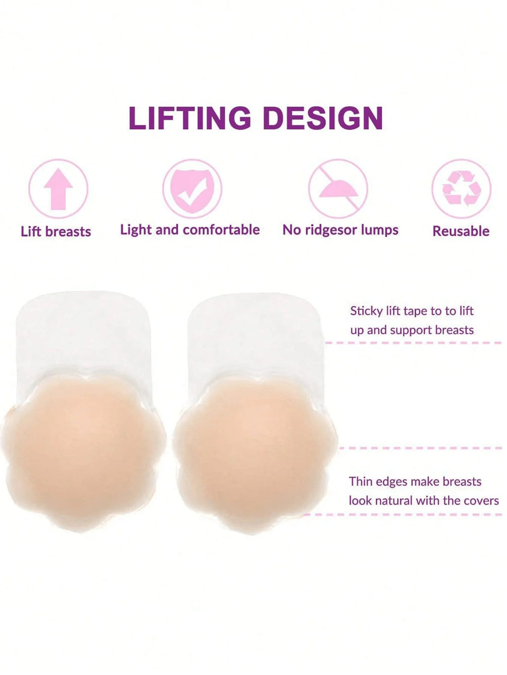 4Pcs 6.5cm Round Silicone Reusable Nipple Covers, Pull-Up Bra Pads, with Pull-On Design, Washable