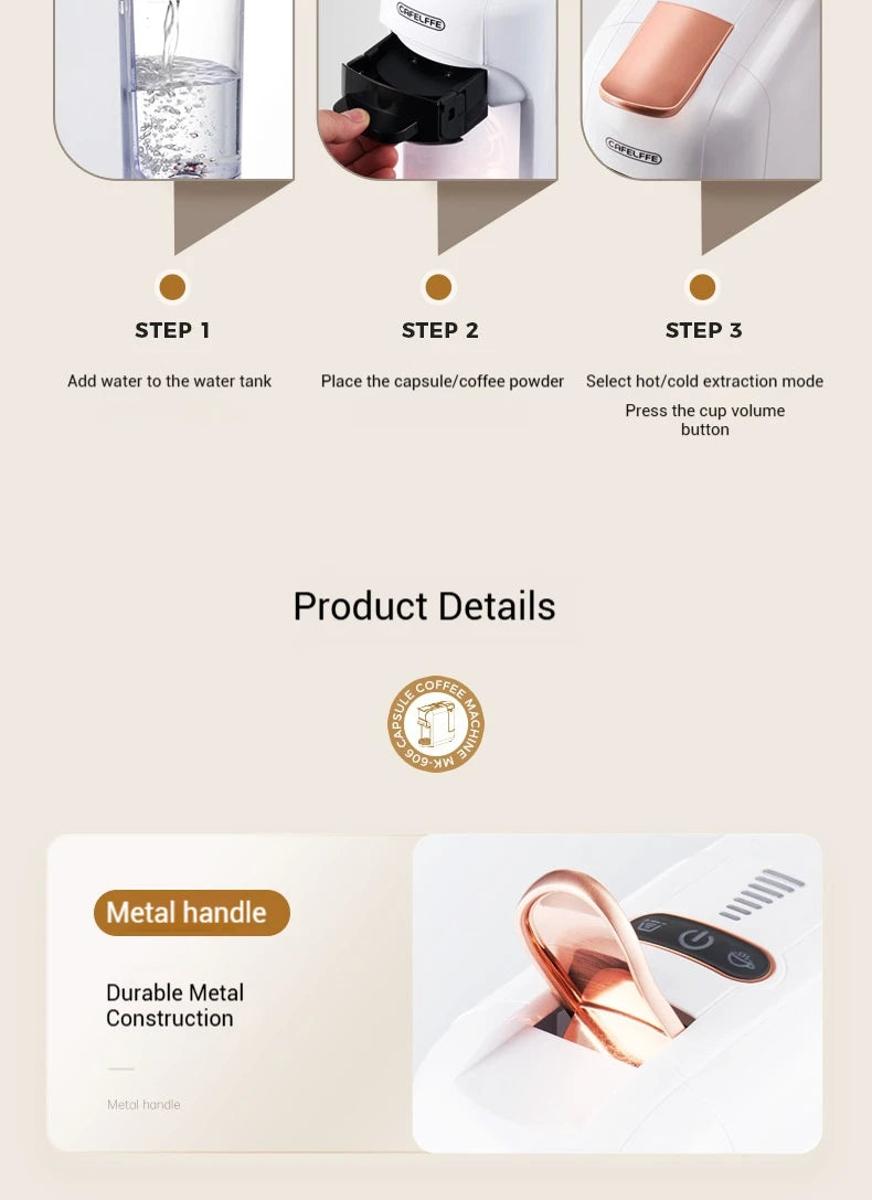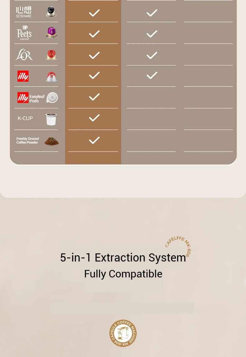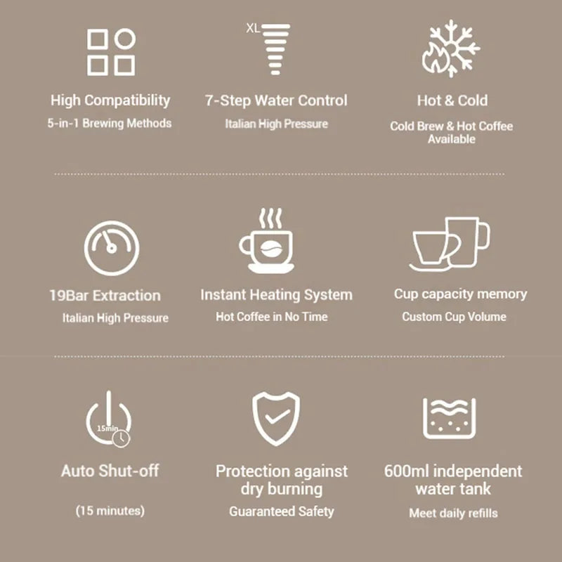 5-in-1 capsule coffee machine, fully automatic small household coffee machine, 7-speed water level hot and cold Italian style ca