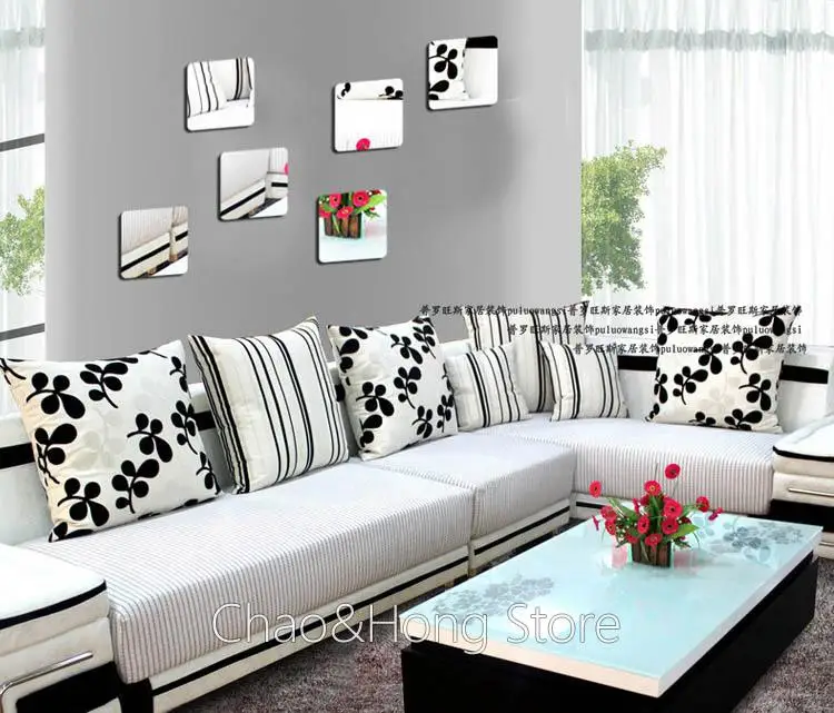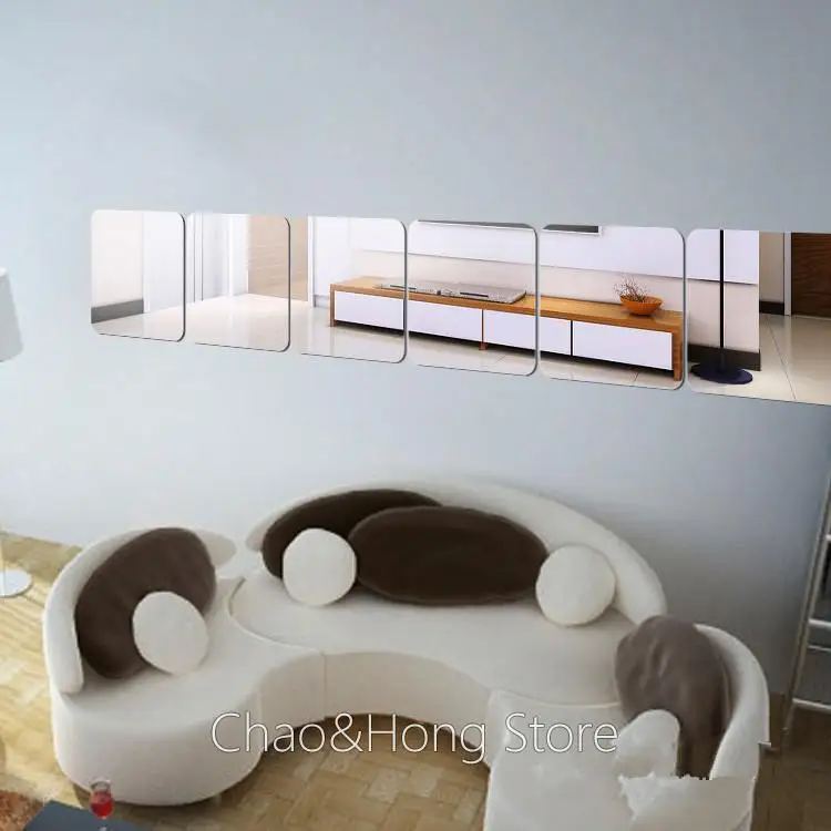 6pcs Acrylic Mirror Wall Sticker Square DIY Art Mural Home Decoration For