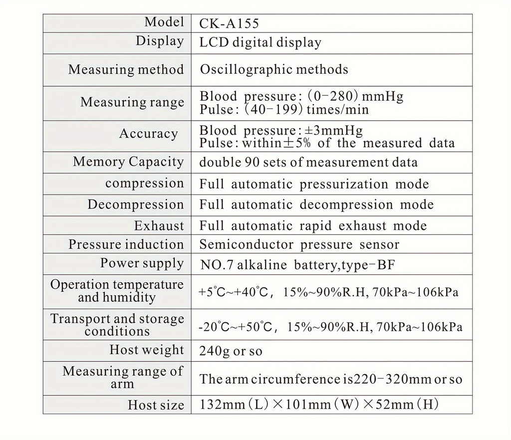 Automatic Upper Arm Blood Pressure Monitor for Adults with Arrhythmia Indicator, Large LED Display, Adjustable Cuff (8.7"-15.7"), Memory Function - Battery Operated (4xAAA Not Included) - CK-A155
