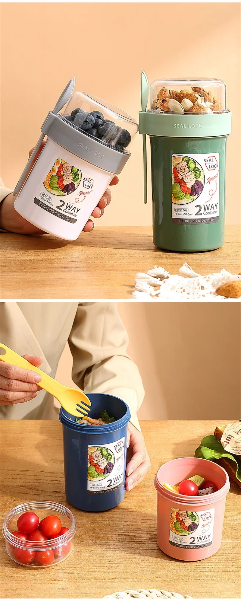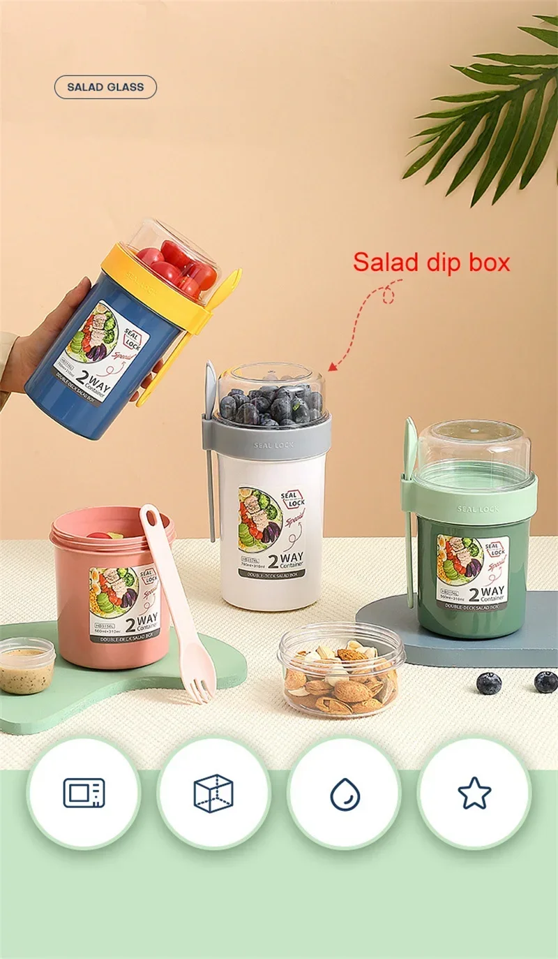 [Oatmeal Container to Go]: Experience the ultimate convenience of our versatile salad cup, designed not only for salads but also as an oatmeal container for your healthy breakfast on the go. Enjoy your favorite overnight oats, pudding, or cereal with fruit, nuts, and milk/yogurt parfait anytime, anywhere.
