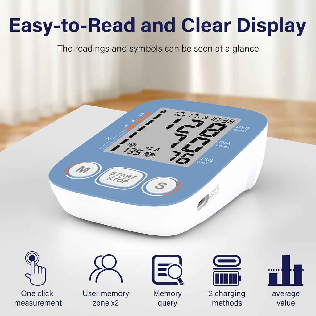 Blood Pressure Monitor For Home Use, Upper Arm Blood Pressure Monitors, BP Machine With 2x199 Reading Memory, Adjustable Arm Cuff 9"-16", Large Display With Light Storage Bag