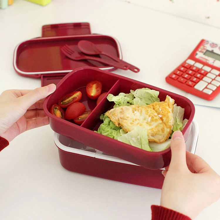 Japanese Bento Box Funny Lunch Box For Kids To School Double Layer Plastic Food Storage Container With Compartments BPA Free