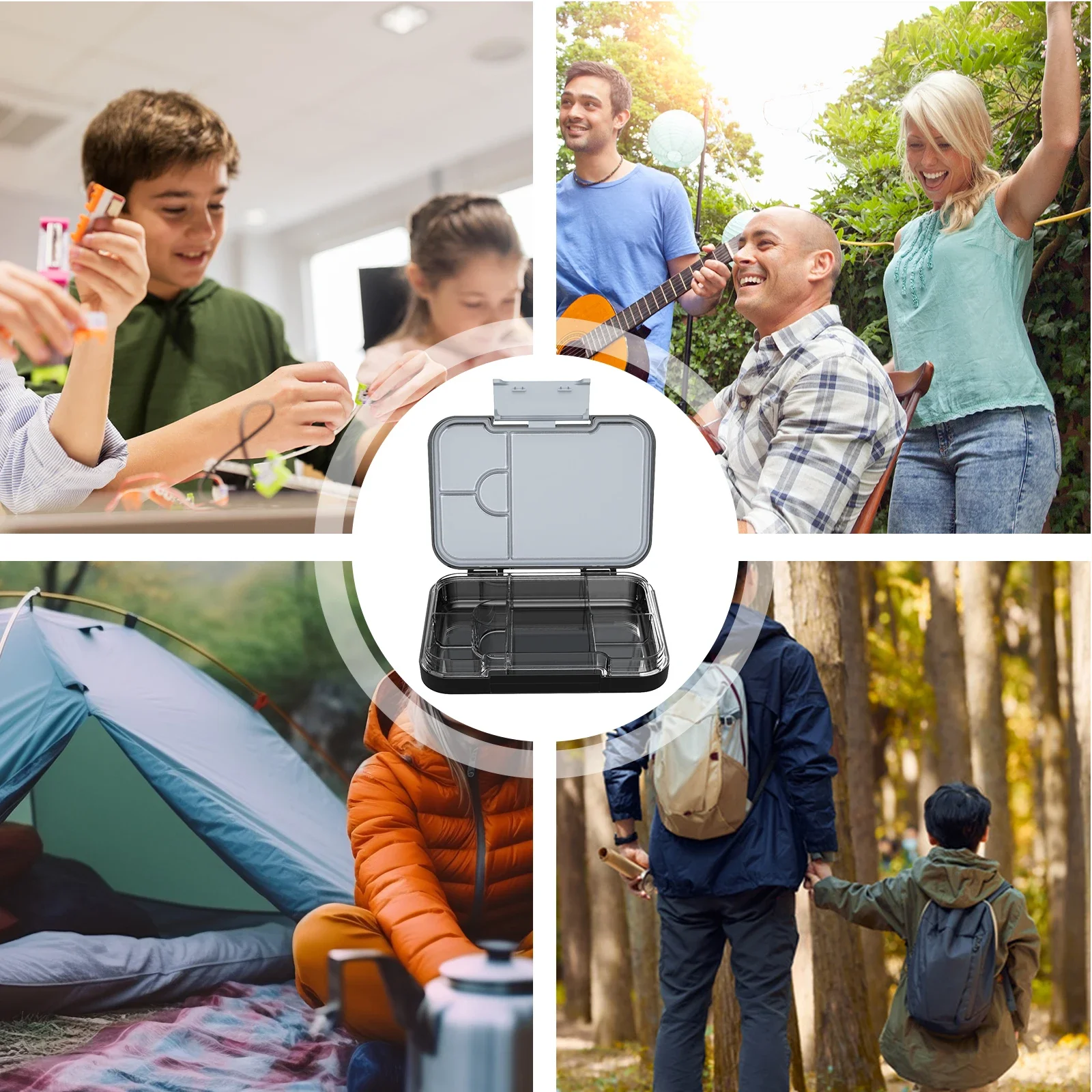 Kids Bento Lunch Box with 4/6 Compartments BPA Free Lunchable Food Container Microwave & Dishwasher Safe for Daycare, School