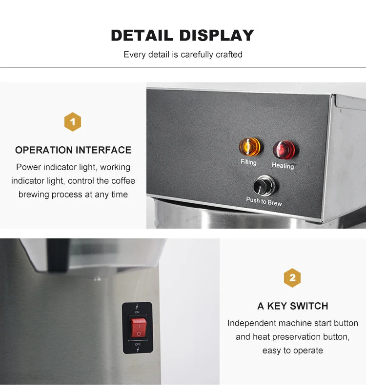 Large Capacity 2.2L Coffee Shop Appliances Coffee Brewer Multi Drink Commercial American Coffee Machine