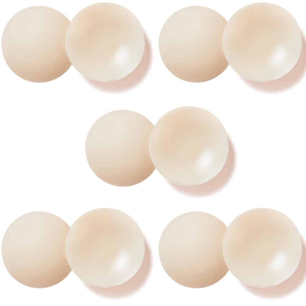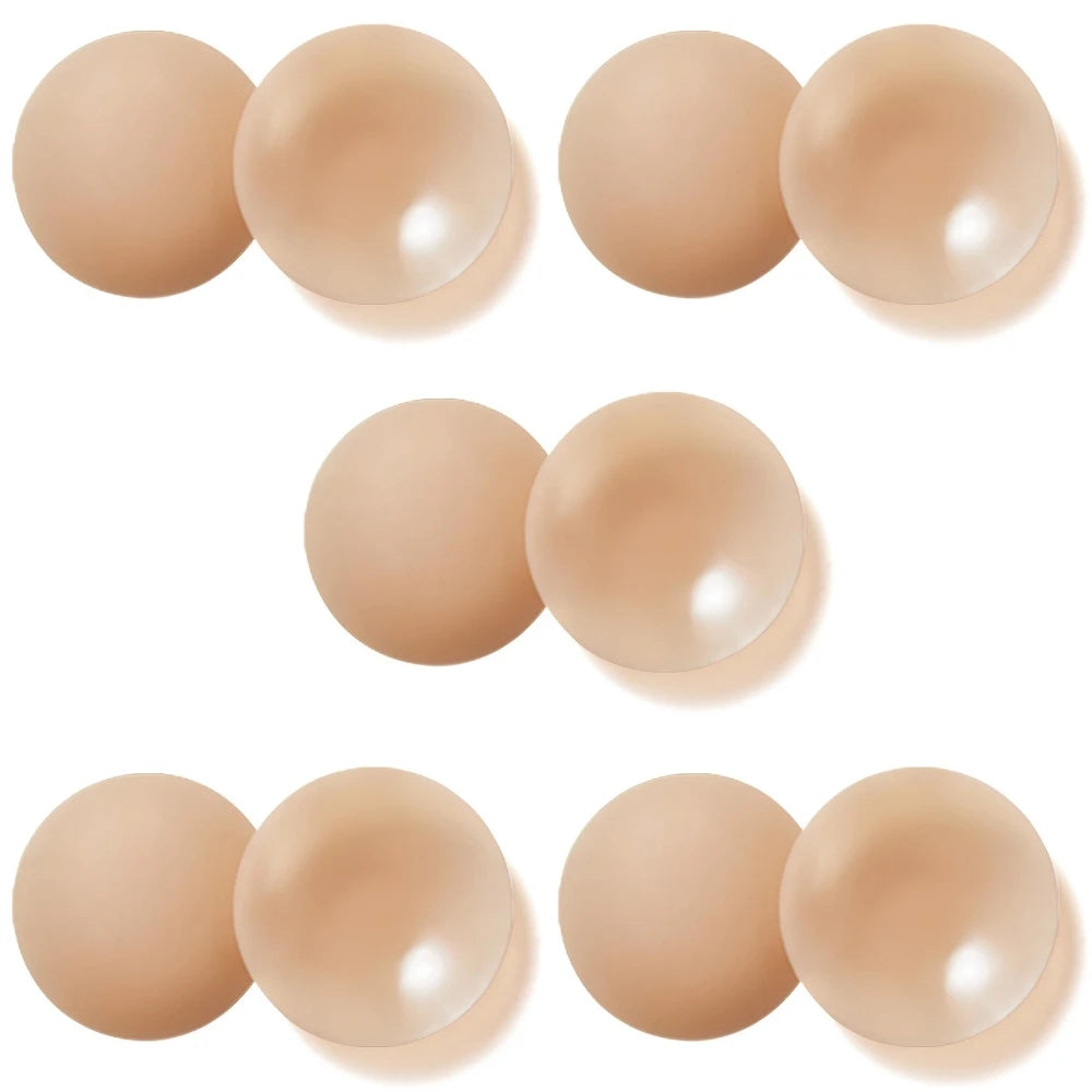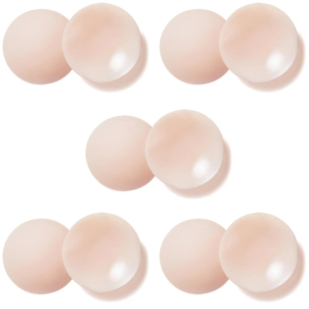 Nippies Nipple Cover - Sticky Adhesive Silicone Nipple Pasties - Reusable Pasty Nipple Covers for Women 5 Pairs Travel Set