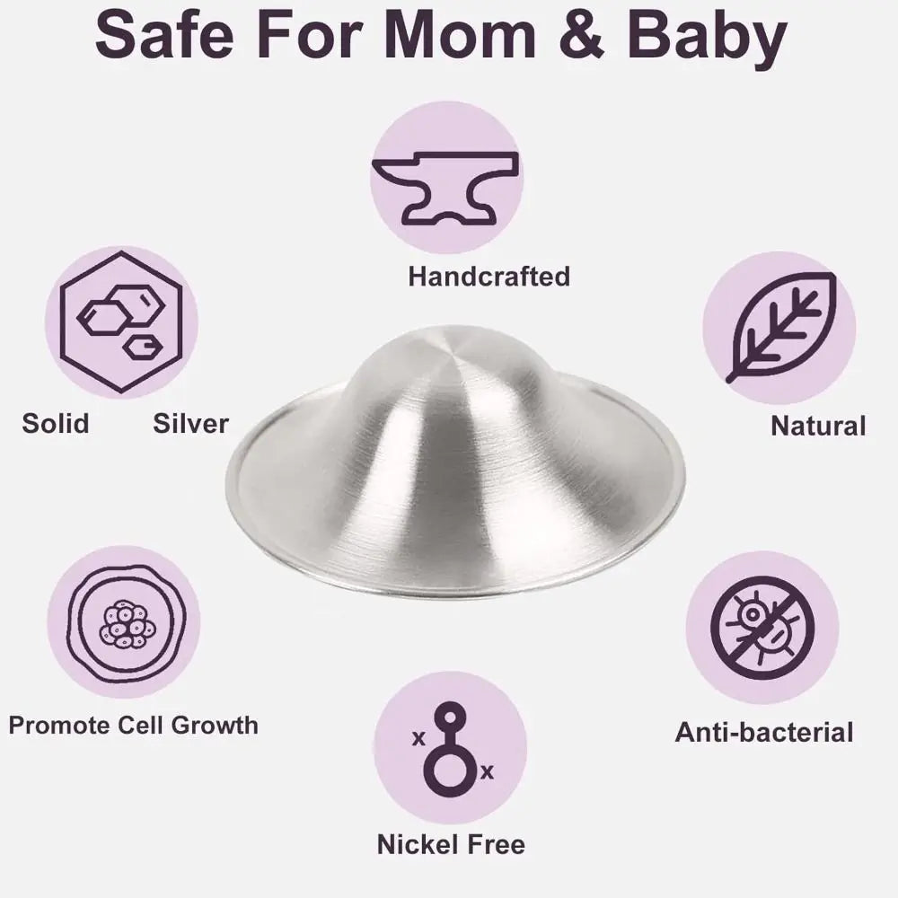 Brand New and High Quality Name: Nipple Shields Material: silver Color: silver Size: Regular Size Quantity: 1box Silver nipple shields protect mothers' physical and mental health: Silver can accelerate wound healing and prevent infection. Our nipple shields made of silver can not only relieve nipple pain, but also heal wounds quickly. The silver nipple shell cover protects the nipple and allows for better healing. Natural, safe, and effective; no other creams or lotions needed; no chemicals used on mom or baby. Protect mother's physical and mental health Silver Nipple Shield, a must have for newborn moms: You can safely use the nursing cup during pregnancy (the first two weeks of breastfeeding) and after birth as a preventive measure to avoid irritation, cuts, pain or crack. The Silver Nursing Cup for Sore Nipples is a must have for newborn moms who need help healing and soothing sore nipples. Nursing Bra Shield for Breastfeeding Mothers Comes with How to Use and Clean It Fits and Helps Protect Your Nipples While Breastfeeding Easy to use: Place a drop of breast milk inside the nipple shield cup so that it adheres well to your breasts. Place them over your nipples and put on your bra. Breast milk promotes healing of painful, cracked nipples, and the engineered design prevents nipples from moving around. As a precaution, start using them a few days before birth. Package included: 1 box * Nipple Shields