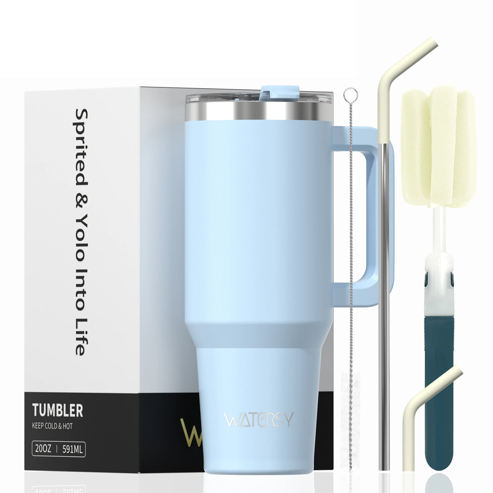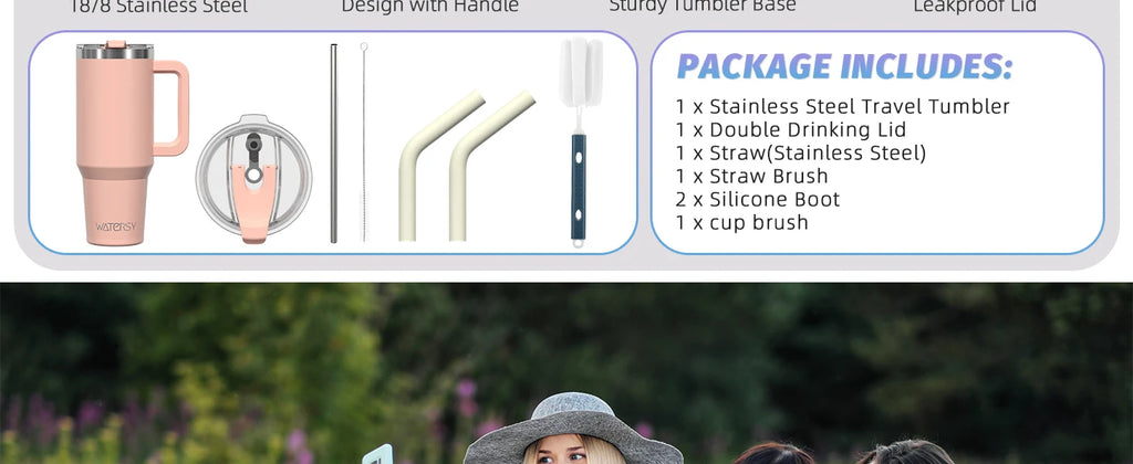 WATERSY 20oz 30oz 40oz Tumbler with Handle & Straw, Large Capacity Stainless Steel Thermal Cup, Vacuum Insulated Mug for Car, Travel, Office Gift
